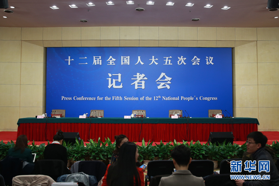 3月11日,十二屆全國人大五次會議新聞中心舉行記者會,邀請國家衛生計生委主任李斌、副主任王培安和副主任、國務院醫改辦主任王賀勝就“‘十三五’開局之年衛生計生改革發展”的相關問題回答中外記者的提問。圖為記者會現場。新華網/中國政府網 傅義洲 攝