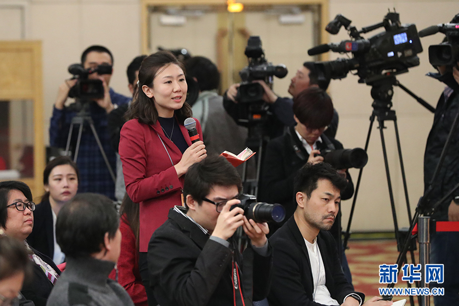 3月11日,十二屆全國人大五次會議新聞中心舉行記者會,邀請國家衛生計生委主任李斌、副主任王培安和副主任、國務院醫改辦主任王賀勝就“‘十三五’開局之年衛生計生改革發展”的相關問題回答中外記者的提問。圖為中央人民廣播電臺記者提問。新華網/中國政府網 傅義洲 攝
