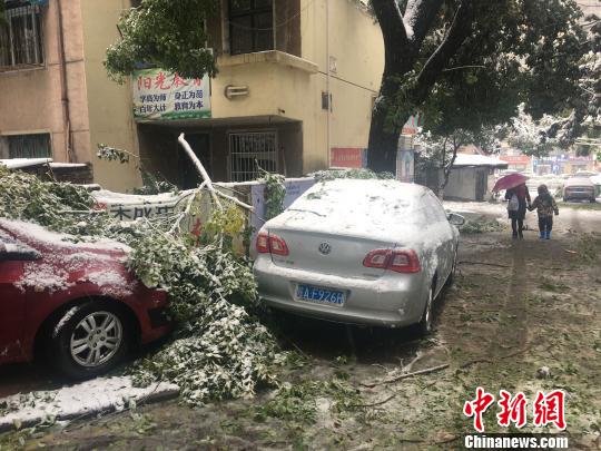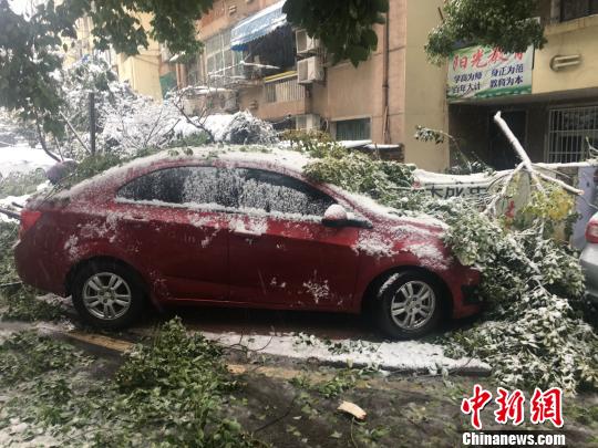 合肥一小區(qū)內(nèi),樹(shù)枝被積雪壓斷,砸在路邊停靠的車(chē)輛上。 趙強(qiáng) 攝