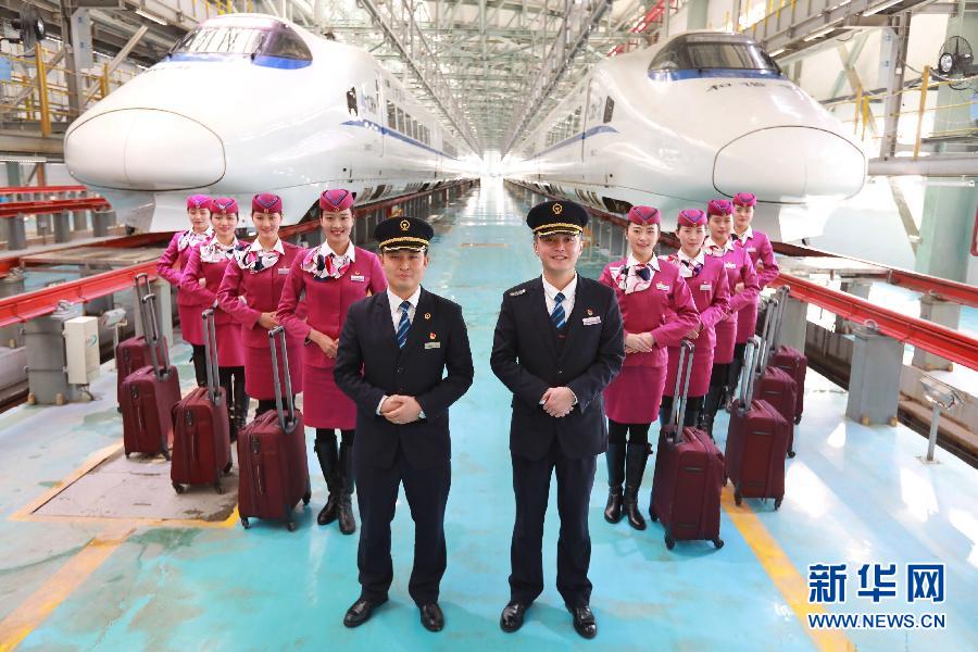 1月16日,擔任渝貴鐵路貴陽地區(qū)首發(fā)列車值乘工作的司機、乘務(wù)員、乘警等在貴陽亮相。新華社記者劉續(xù)攝