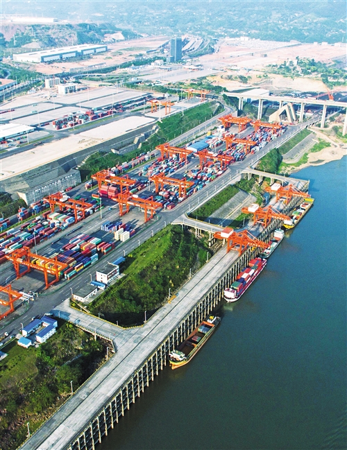 圖為重慶果園港,中歐國際貨運大通道與長江黃金水道實現“無縫連接”。新華社記者 劉潺 攝