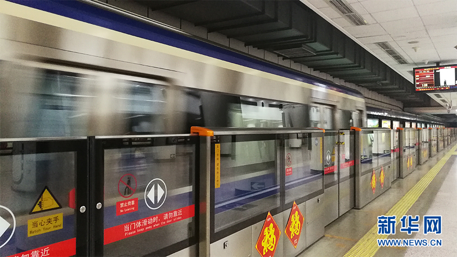 2018年2月15日,北京地鐵2號(hào)線屏蔽門上都貼上了“?!弊?,喜迎農(nóng)歷新年。新華網(wǎng) 張明宇 攝