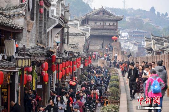 2月17日,正值農歷大年初二,湖南鳳凰古城內人頭攢動,眾多海內外游客選擇來到鳳凰古城感受新春年味。 楊華峰 攝