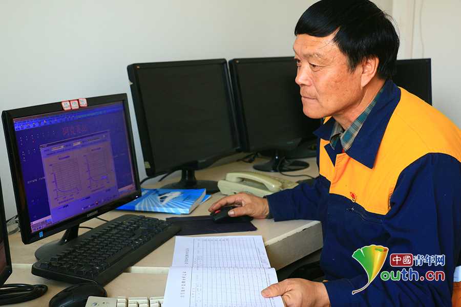 邰芳鵬年近60歲,雖然體力上不如年輕人,但他從來不服輸。如今,南疆鐵路已升級為計算機聯鎖設備,邰芳鵬也緊跟時代步伐,學習計算機操作?,F在他對計算機監測設備也能進行熟練操作和分析。中國青年網通訊員姚旭東 攝
