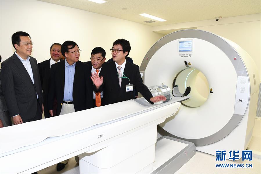 2017年8月24日,在日本名古屋,人們參觀中國的醫療設備“聯影96環PET-CT”,這是“中國智造”大型高端醫療設備首次打入日本市場。PET-CT是正電子發射計算機斷層掃描技術的英文簡稱,這種醫療設備可對人體進行全方位掃描,達到發現病灶和診斷疾病的目的。新華社記者華義 攝