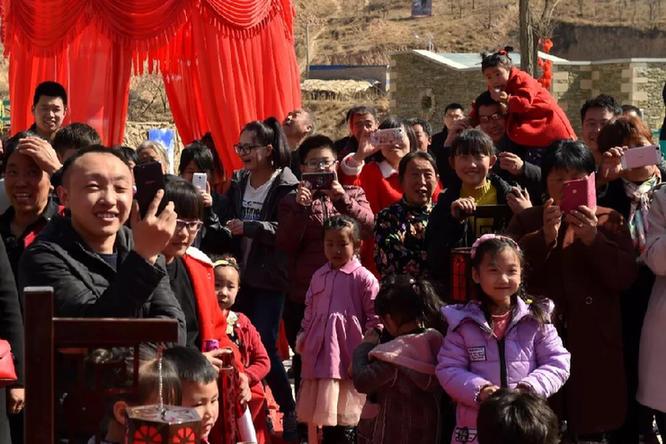 2月23日,在山西省永和縣奇奇里村,村里的老老少少在觀看馮文忠的婚禮儀式。新華社記者 曹陽(yáng) 攝