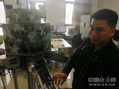 蔣剛介紹“龍騎士”機器人。經濟日報-中國經濟網記者 佟明彪/攝
