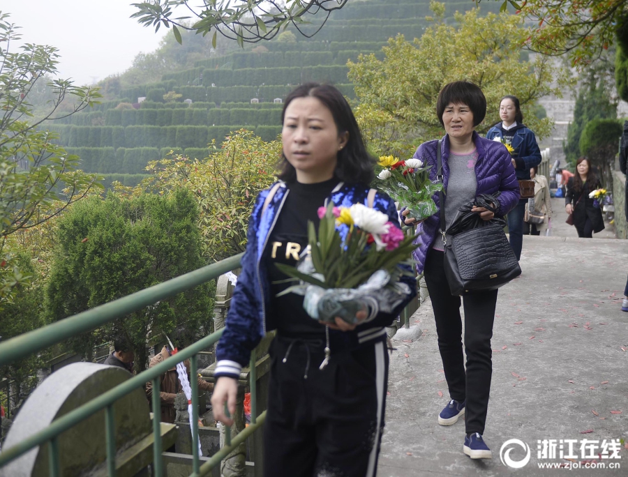 4月5日清明節(jié)上午,前往浙江省定舟山市定海區(qū)清陵掃墓人絡繹不絕,不少掃墓人用鮮花祭祀,寄托哀思懷念逝去的親人,倡導環(huán)保綠色的清明。(浙江在線拍友 胡社友 攝)