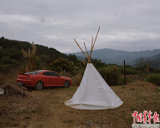 夫妻倆居住的圓頂木屋距離村子幾百米遠(yuǎn),是和朋友們一起搭建的。屋里的電氣設(shè)備一應(yīng)俱全,太陽能發(fā)電在村子停電時仍能應(yīng)付日常消耗。屋外停著一輛二手的紅色兩座跑車,用來載人拉貨。與嶗山的“自給自足實驗”不同,這些只有在現(xiàn)代工業(yè)社會才能量產(chǎn)的物品成了山中生活的得力工具。