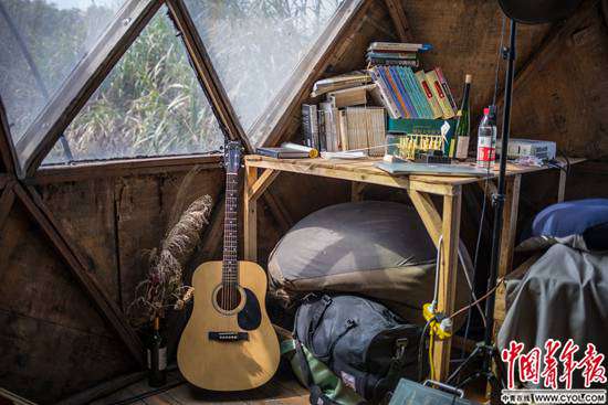 早在2011年,面對城市的高房價和霧霾,22歲的唐冠華就開始思考一種主流之外的生活方式。很快,從事廣告設(shè)計和理財分析工作的唐冠華和邢振先后離職,在青島嶗山的山林中建立了“自給自足實驗室”,盡量不使用與不可持續(xù)能源相關(guān)的工具,獨(dú)立生活了5年。