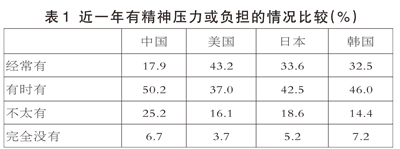 52.6%的中國(guó)高中生精神壓力來源于升學(xué)或畢業(yè)后的去向問題,韓國(guó)和美國(guó)高于中國(guó),依次為59.2和53.0%,日本最低,為42.4%。