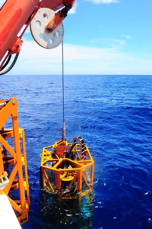 “海斗”號自主遙控水下機器人在西太平洋進(jìn)行下潛實驗(2016年7月18日攝)。新華社發(fā)(沈陽自動化所提供)