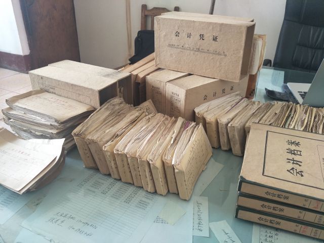 村里有一個(gè)傳統(tǒng),每一筆村集體開(kāi)支都記在賬上。這些賬目裝滿了兩個(gè)大木柜,有些紙張?jiān)缫逊狐S,字跡開(kāi)始模糊。