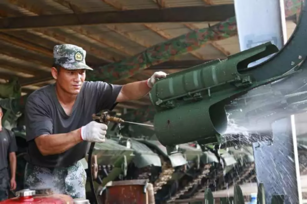 按照規定,訓練完畢后,需對戰車進行清理保養,小編也想上去幫幫忙,手接觸到坦克鋼鐵蓋時,一下子被燙的縮了回來。