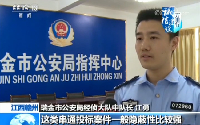 瑞金市公安局經(jīng)偵大隊中隊長 江勇:這類串通投標案件一般隱蔽性比較強,對于這個案子來說,涉案人員眾多。而且他們都是利益獲得方容易形成攻守同盟,對我們公安機關(guān)取證有很大的困難。通過調(diào)取大量的銀行流水和該項目的相關(guān)投標招標資料。再通過外圍走訪,確定鐘某等人涉嫌串通投標。