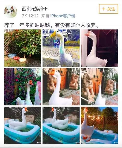原來前些日子,一位名叫“西弗勒斯FF”的網友發微博稱,自己是上海松江區寵物鵝的主人,由于要搬家,養了一年半的鵝無法繼續養下去,想問上海海事大學能不能幫忙收養,并稱自己的鵝非常英俊。