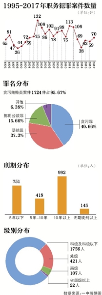 昨天上午,北京一中院發(fā)布《1995年-2018年職務(wù)犯罪白皮書》(以下簡稱白皮書)。作為承擔(dān)了北京近四成的職務(wù)犯罪審判任務(wù)的法院,23年來,一中院通過審理的1800余件職務(wù)犯罪案件,總結(jié)出了該類案件的主要特征和發(fā)展趨勢。近年來,職務(wù)犯罪中“小官”犯罪占比較高、犯罪行為時間跨度平均為7年,“初犯”低齡化職務(wù)犯罪特征初顯等。