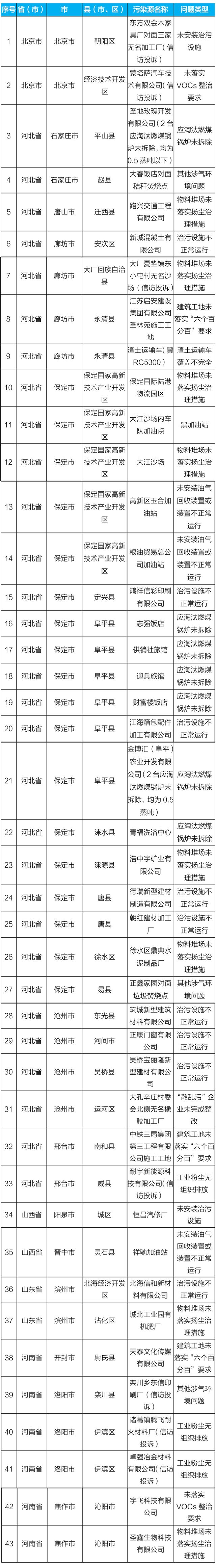 據生態環境部微信公眾號消息,11月9日,2018-2019年藍天保衛戰重點區域強化監督工作繼續開展,發現涉氣環境問題45個(其中2家企業各有2臺應淘汰燃煤鍋爐未拆除),如下: