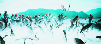 企業(yè)與地方聯(lián)合發(fā)展生態(tài)綠色經(jīng)濟,在千島湖創(chuàng)新發(fā)展“保水漁業(yè)”,使當(dāng)?shù)氐木G水青山變成了金山銀山。圖為千島湖巨網(wǎng)捕魚的壯觀景象。(資料圖片)