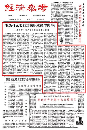 在《我為什么自動離職賣烤羊肉串?》一文中,余林舟說,賣烤羊肉串14個月的營業(yè)額超過12000元,獲純利6000多元。十二大報告說要發(fā)展個體經(jīng)濟,對它不準打擊刁難,“我才下決心,當個個體戶?!?/p>