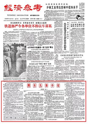 80年代初,改革的東風讓經(jīng)濟建設的熱潮,一浪高過一浪,新華社想辦一份綜合性經(jīng)濟報紙,時任新華社國內(nèi)部副主任的李峰建議,報紙采用“經(jīng)濟參考”作為報名,第一可以有些“神秘”色彩,第二說話可以放開一些。新華社黨組采納了他的意見。