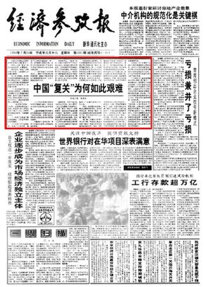 也是1988年,日本友人小林實先生對我國經(jīng)濟考察后說,“中國對企業(yè)太嬌慣了”。1988年7月25日,一篇題為《少些父愛主義 多些市場磨難》的評論,成為《經(jīng)濟參考報》在我國經(jīng)濟體制改革到了關鍵時刻發(fā)出的疾呼。