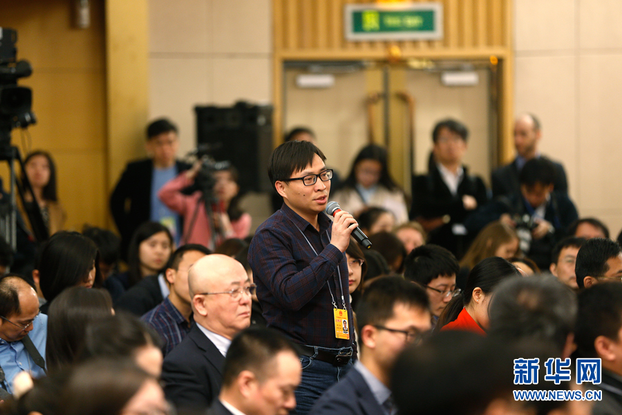 十三屆全國人大一次會議新聞中心3月6日上午10時在梅地亞中心多功能廳舉行記者會,邀請國家發展和改革委員會主任何立峰、副主任張勇、副主任寧吉喆就“創新和完善宏觀調控,推動高質量發展”相關問題回答中外記者提問。圖為經濟日報記者提問。 新華網/中國政府網 陳杰 攝