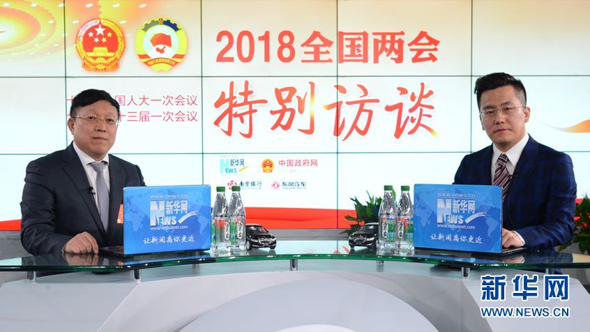 3月6日,全國人大代表、東風汽車集團有限公司技術中心主任談民強(左)做客新華網2018全國兩會特別訪談。新華網 楊濛/攝