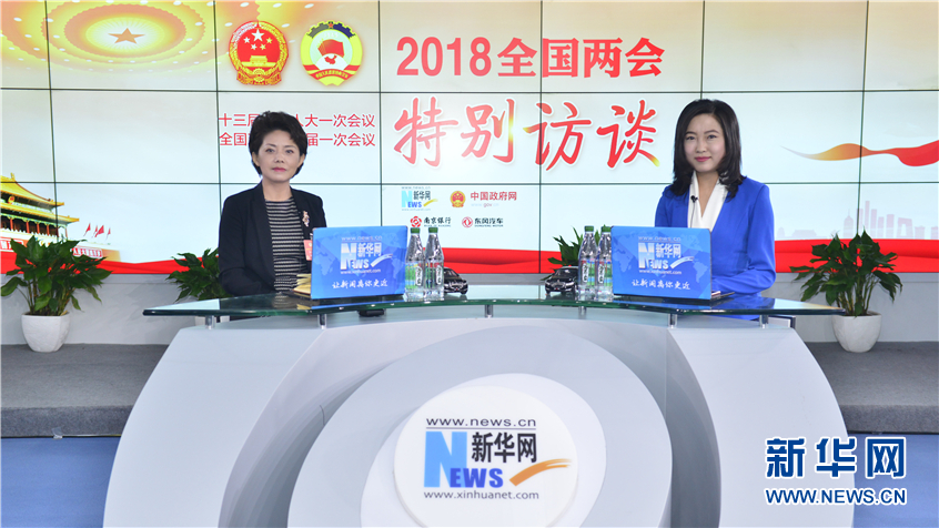 3月7日,全國政協委員、民盟中央常委、民盟吉林省委主委、吉林省旅游發展委員會主任楊安娣(左)做客新華網2018全國兩會特別訪談。新華網?李相博攝
