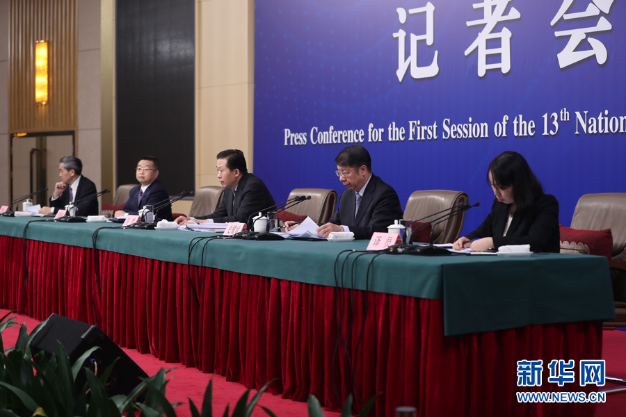 十三屆全國人大一次會議新聞中心于3月7日上午在梅地亞中心多功能廳舉行記者會,邀請財政部部長肖捷,副部長史耀斌、胡靜林就“財稅改革和財政工作”相關問題回答中外記者提問。圖為記者會現場。新華網/中國政府網?翟子赫