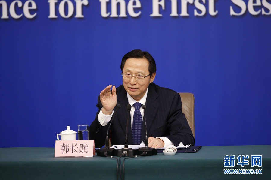 十三屆全國人大一次會(huì)議新聞中心于3月7日在梅地亞中心多功能廳舉行記者會(huì),邀請(qǐng)農(nóng)業(yè)部部長(zhǎng)韓長(zhǎng)賦,農(nóng)業(yè)部新聞發(fā)言人、辦公廳主任潘顯政就“實(shí)施鄉(xiāng)村振興戰(zhàn)略 推動(dòng)農(nóng)業(yè)轉(zhuǎn)型升級(jí)”的相關(guān)問題回答中外記者的提問。圖為韓長(zhǎng)賦回答記者提問。新華網(wǎng)/中國政府網(wǎng) 陳杰 攝
