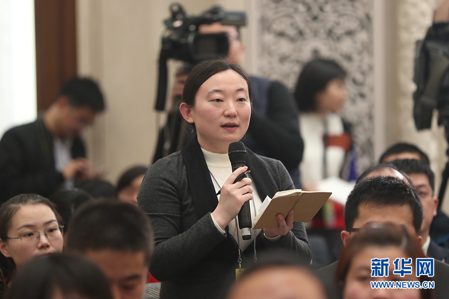全國政協十三屆一次會議3月8日15:00在人民大會堂新聞發布廳舉行第二場記者會,邀請中央財經領導小組辦公室副主任楊偉民,中國進出口銀行董事長、黨委書記胡曉煉,農業部原副部長陳曉華,全國工商聯副主席、清華大學經濟管理學院院長錢穎一,中國中化集團有限公司黨組書記、董事長寧高寧就推動經濟高質量發展回答記者提問。圖為中國國際廣播電臺記者提問。新華網/中國政府網 翟子赫攝??