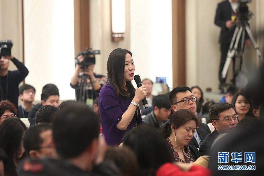 全國政協十三屆一次會議3月8日15:00在人民大會堂新聞發布廳舉行第二場記者會,邀請中央財經領導小組辦公室副主任楊偉民,中國進出口銀行董事長、黨委書記胡曉煉,農業部原副部長陳曉華,全國工商聯副主席、清華大學經濟管理學院院長錢穎一,中國中化集團有限公司黨組書記、董事長寧高寧就推動經濟高質量發展回答記者提問。圖為新華社記者提問。新華網/中國政府網 翟子赫 攝