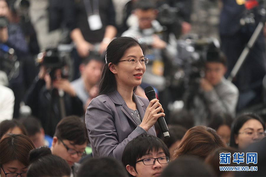 全國政協十三屆一次會議3月8日15:00在人民大會堂新聞發布廳舉行第二場記者會,邀請中央財經領導小組辦公室副主任楊偉民,中國進出口銀行董事長、黨委書記胡曉煉,農業部原副部長陳曉華,全國工商聯副主席、清華大學經濟管理學院院長錢穎一,中國中化集團有限公司黨組書記、董事長寧高寧就推動經濟高質量發展回答記者提問。圖為中國新聞社記者提問。新華網/中國政府網?郝廣鵬 攝