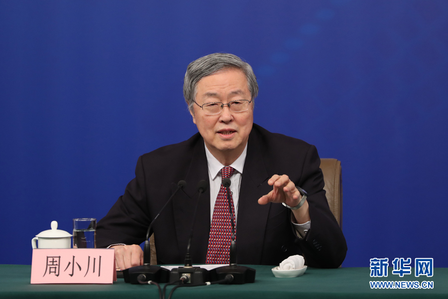 十三屆全國人大一次會議新聞中心3月9日在梅地亞中心多功能廳舉行記者會,邀請中國人民銀行行長周小川,副行長易綱,副行長、國家外匯管理局局長潘功勝就“金融改革與發展”相關問題回答中外記者提問。圖為周小川回答記者提問。新華網/中國政府網 陳杰 攝