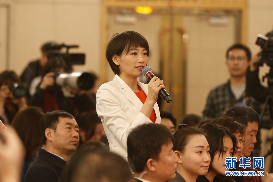 十三屆全國人大一次會議新聞中心3月9日在梅地亞中心多功能廳舉行記者會,邀請中國人民銀行行長周小川,副行長易綱,副行長、國家外匯管理局局長潘功勝就“金融改革與發展”相關問題回答中外記者提問。圖為中央電視臺記者提問。新華網/中國政府網 陳杰 攝