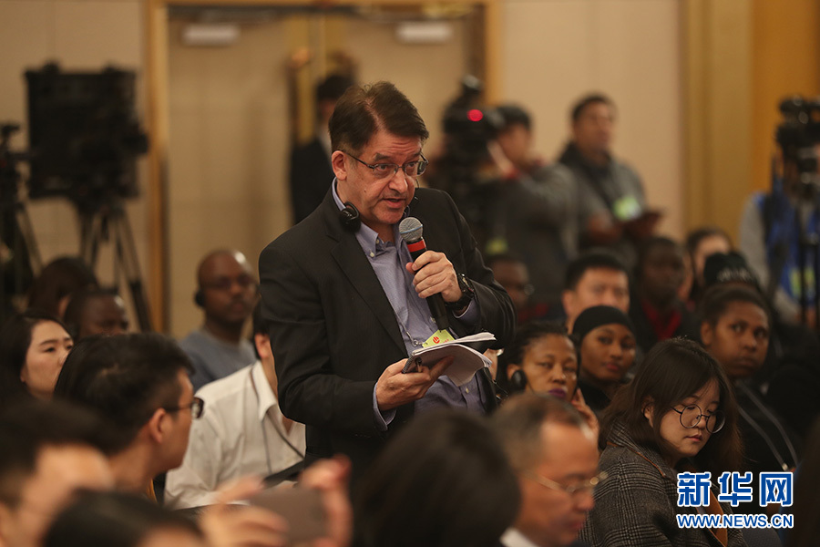 十三屆全國人大一次會議新聞中心3月11日10時在梅地亞中心多功能廳舉行記者會,邀請商務部部長鐘山、副部長兼國際貿(mào)易談判副代表王受文、副部長錢克明就“推動形成全面開放新格局 推動商務事業(yè)高質(zhì)量發(fā)展”相關(guān)問題回答中外記者提問。圖為彭博社記者提問。新華網(wǎng)/中國政府網(wǎng)?曲植 攝