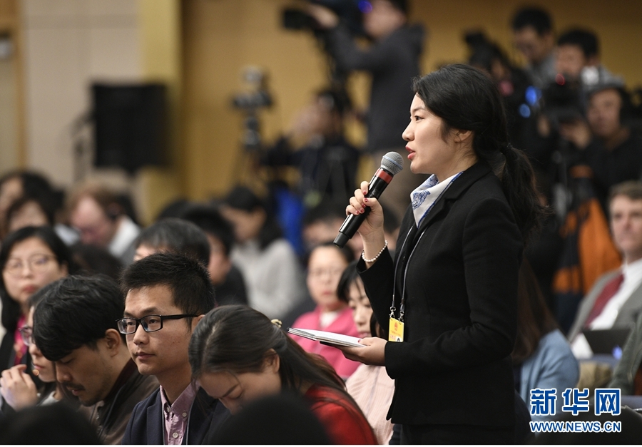 3月11日,十三屆全國人大一次會議新聞中心舉行記者會,邀請商務部部長鐘山、副部長兼國際貿易談判副代表王受文、副部長錢克明就“推動形成全面開放新格局推動商務事業高質量發展”相關問題回答中外記者提問。這是記者在提問。 新華社記者 王鵬 攝