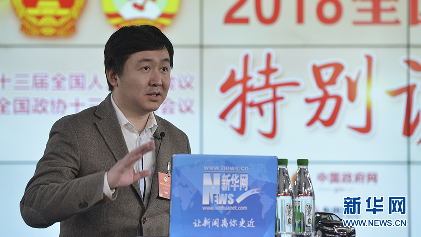 11日,全國政協委員、搜狗CEO王小川做客新華網2018全國兩會特別訪談。新華網 李相博攝