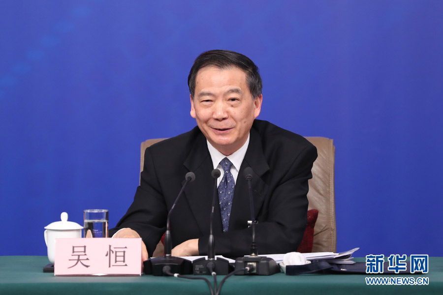 十三屆全國人大一次會(huì)議新聞中心于3月12日15時(shí)在梅地亞中心多功能廳舉行記者會(huì),邀請十二屆全國人大財(cái)經(jīng)委副主任委員尹中卿、教科文衛(wèi)委副主任委員吳恒、環(huán)資委副主任委員袁駟、內(nèi)司委委員鄭功成,全國人大常委會(huì)預(yù)算工委副主任劉修文、常委會(huì)辦公廳秘書局巡視員傅文杰就“人大監(jiān)督工作”相關(guān)問題回答中外記者提問。圖為教科文衛(wèi)委副主任委員吳恒回答記者提問。新華網(wǎng)/中國政府網(wǎng) 陳杰 攝