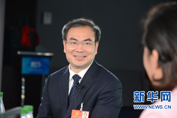 全國人大代表、張家界市市長劉革安做客新華網(wǎng)2018全國兩會(huì)特別訪談。新華網(wǎng)楊濛 攝