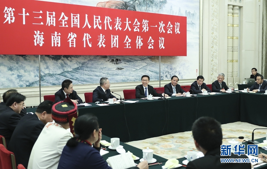 3月12日,中共中央政治局常委韓正參加十三屆全國人大一次會議海南代表團的審議。