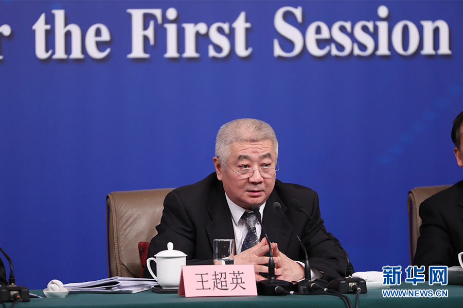 圖為全國人大常委會法工委副主任王超英回答記者提問。新華網/中國政府網 翟子赫 攝