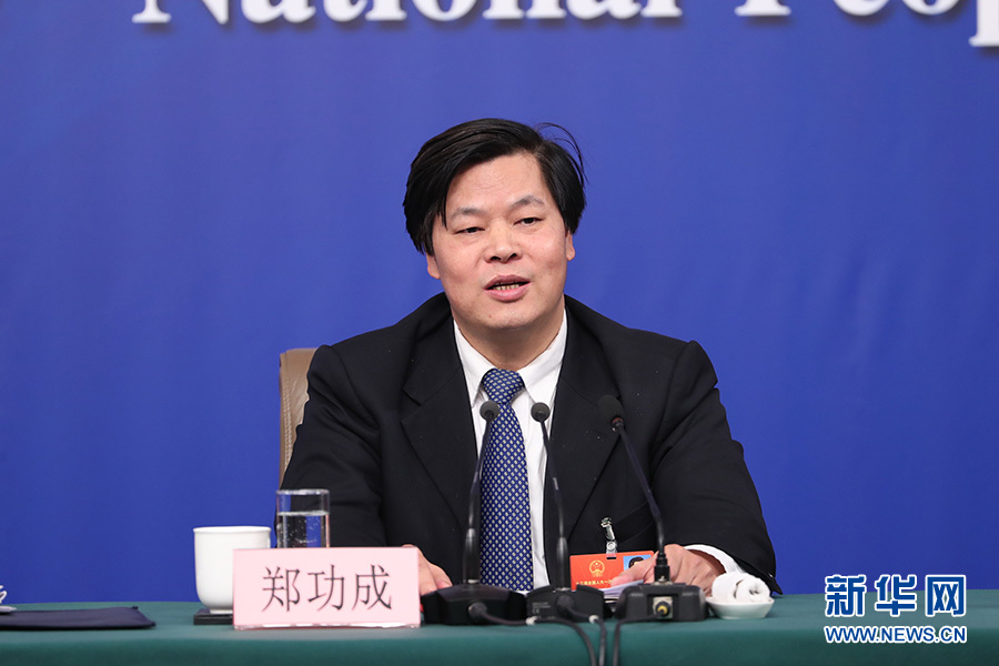 十三屆全國人大一次會議新聞中心于3月12日15時在梅地亞中心多功能廳舉行記者會,邀請十二屆全國人大財經委副主任委員尹中卿、教科文衛委副主任委員吳恒、環資委副主任委員袁駟、內司委委員鄭功成,全國人大常委會預算工委副主任劉修文、常委會辦公廳秘書局巡視員傅文杰就“人大監督工作”相關問題回答中外記者提問。圖為內司委委員鄭功成回答記者提問。新華網/中國政府網 陳杰 攝