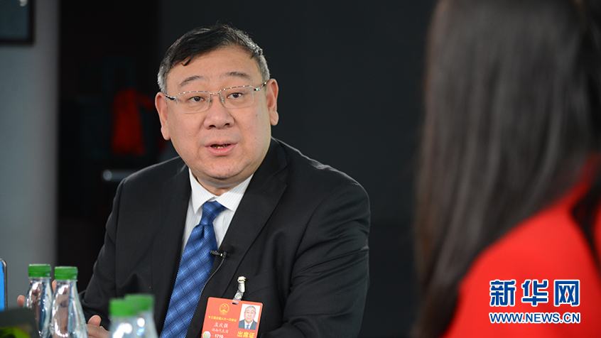 3月12日,全國人大代表、國家電網湖南省電力有限公司董事長孟慶強(左)做客新華網2018全國兩會特別訪談。新華網 楊濛攝