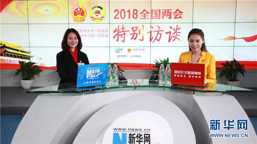 3月13日,全國人大代表、瀘州老窖股份有限公司酒體設計管理中心副主任曾娜(左)做客新華網2018全國兩會特別訪談。新華網 楊锘攝