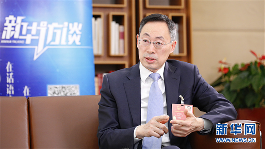 圖為全國人大代表、中糧集團黨組副書記、總裁于旭波接受新華網記者采訪。新華網李江攝