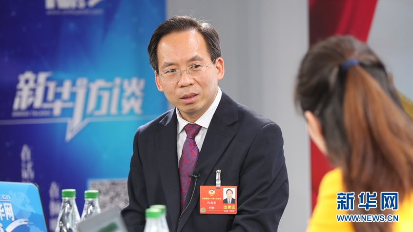 ??? 圖為全國人大代表,中國信息通信研究院院長、黨委副書記、中國通信標準化協會副理事長劉多做客2018全國兩會新華訪談。新華網郭小天攝