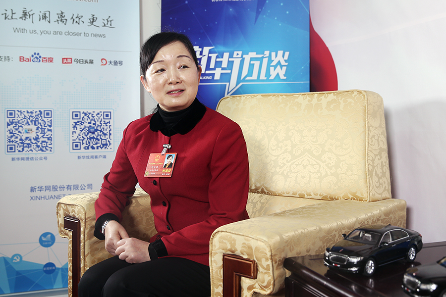 全國人大代表劉光萍到新華網人民大會堂兩會特別訪談間接受專訪。新華網 郝廣鵬 攝