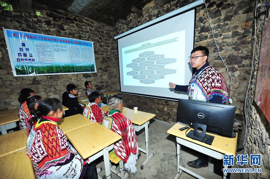 在貴州省畢節市威寧彝族回族苗族自治縣石門鄉團結村七里沖組脫貧攻堅講習點,村支書胡鈞溥在向當地群眾講解十九大精神及相關的扶貧政策(2017年10月23日攝)。逐夢征程,需要價值追求的引領和精神力量的支撐。 “社會主義核心價值觀決定著各民族共有精神家園的發展方向,必須在各民族中大力培育和踐行”“以社會主義核心價值觀為引領,深入挖掘優秀傳統農耕文化蘊含的思想觀念、人文精神、道德規范”“引導全社會積極培育和踐行社會主義核心價值觀,樹立良好道德風尚”……今年全國兩會期間,習近平總書記多次強調培育和踐行社會主義核心價值觀。兩會上,社會主義核心價值觀被寫入國家根本大法。浩渺行無極,揚帆但信風。兩會結束后,代表委員們奔赴大江南北,與各地干部群眾一起,以實際行動推動社會主義核心價值觀建設落細落小落實,持續構筑中國精神、中國價值、中國力量,為劈波斬浪的“中國號”巨輪揚起團結奮進的精神風帆。新華社記者 陶亮 攝